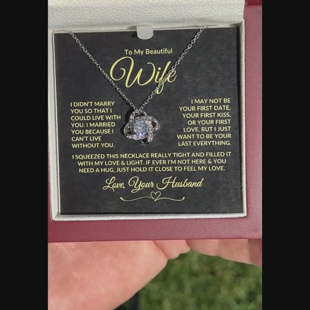 I squeezed this necklace really tight and filled it with my love and light. If ever I'm not here and you need a hug, just hold it close to feel my love. Love, Your Husband"